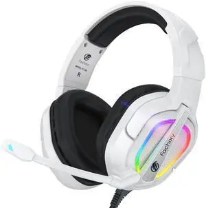 Fachixy FC200 Gaming Headset with Microphone for PS4, PS5, Switch, Xbox, Mac, PC Gaming Headphones with Mic, Gamer Headset with RGB Light - White-Black