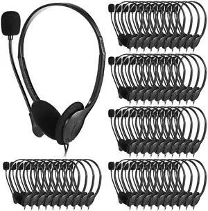 Kathfly Headset with Microphone Black Stereo Headphones Adjustable Office Conference Headphones with 3.5mm Plug for Adult Mobile Phone Tablet Business Call Center (10 Pcs)