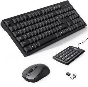 Wireless Keyboard and Mouse Combo-Full Size QWERTY Layout 2.4G Stereo Keycap Ergonomically Designed for Laptop,PC,Notebook,Windows,Computer Wired Numeric keypad,with USB-A&Typ-C 2-in-1 Receiver
