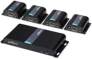 gofanco 1080p 1x4 4 Port HDMI Extender Splitter Over CAT5e/CAT6/CAT7 Ethernet Cable IR Extension, Up to 40m (130ft) at 1080p 60Hz, 1 in 4 Out (HDMIExt4P)