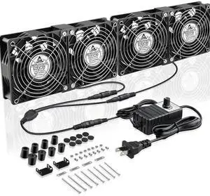 GDSTIME 4x120mm Powerful Computer Fans with AC Powered 100V 240V Variable Speed Controller DIY Cooling Ventilation Exhaust Projects for GPU Mining Rig Receiver TVs Network Rack Window Greenhouse Sheds