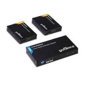gofanco 1080p 1x2 HDMI Extender Splitter Over CAT5e/6/7 Ethernet Cable - 1080p, Up to 50m/165ft, HDMI Loopout, EDID Management, Bi-Directional IR Control, 1 in 2 Out (HDExt2P-Pro)