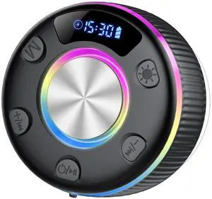 Bluetooth Shower Speaker, IP7 Waterproof Portable Bluetooth 5.3 Speakers with Suction Cup, Mini Wireless Speaker with RGB Lights Time Display, Loud Stereo Sound for Bathroom Beach Outdoor Party Gift