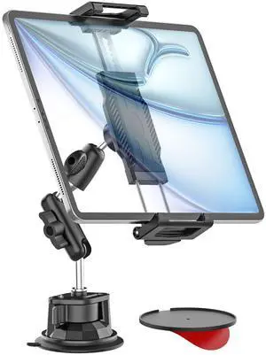 WISHCODE Car Tablet Holder for Dashboard/Windshield,[66LBF Super Suction Cup][Metal Adjustable Arm] Heavy Duty Mount for SUV/Truck, Fits iPad Pro 12.9 Air Mini, Galaxy tab, iPhone, 6.1-15.6" Device