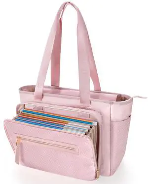 Prokva Teacher Tote Bag for Women, Teacher Work Bag 15.6 inch Laptop Bag with Accordion File Organizer, Pink