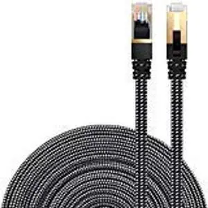 Cat 8 Ethernet Cable 35 FT Flat, High Speed 40Gbps 2000Mhz Braided Internet Cable with Gold Plated RJ45 Network LAN Cable SSTP, Heavy Duty Ethernet Cord Compatible for PS4/5, for Modems, PC/Laptop