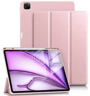 DTTO for iPad Air 13 Inch Case M3/M2 2025/2024, iPad Pro 12.9 Inch Case (6th/ 5th/ 4th/ 3rd Gen), Smart Slim Trifold Stand Soft Cover with Pencil Holder for iPad Air 13", Rose Gold