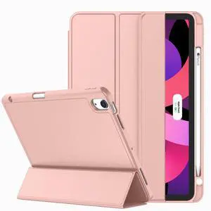 MoKo for iPad Air 11 inch Case M3/M2 2025/2024, iPad Air 5th/4th Gen 10.9 inch Case 2022/2020 with Pencil Holder, Slim Lightweight Trifold Cover with Hard PC Translucent Back Shell, Touch ID,Rose Gold
