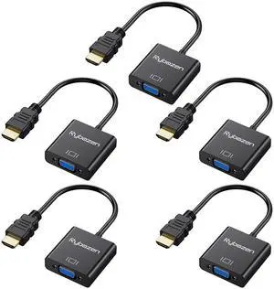 HDMI to VGA Adapter 5 Pack, Gold-Plated HDMI to VGA Converter (Male to Female), Compatible for Computer, Laptop, PC, Monitor, Projector, HDTV, Chromebook, Raspberry Pi, Roku, Xbox and More