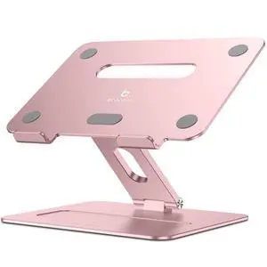 brocoon Adjustable MacBook Pink Laptop Stand for Desk ^^ Ergonomic Aluminum Laptop Riser with Heat-Vent, Compatible for 10-17" Laptops, Rose Gold
