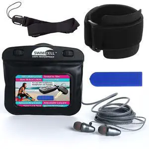 Waterproof MP3 Player Pouch For Swimming With Headphone Jack - Key Holder Case for Car Key Fob Money, MP3 Player. Adjustable Armband and Neck Lanyard with Silicone Key Cover For Arm Wrist or Ankle.