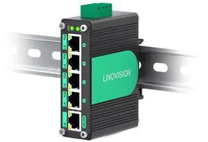 LINOVISION Industrial 5 Ports Gigabit Solar PoE Switch Support DC9V-54V to DC48V PoE, 4 x IEEE802.3af/at 30W PoE Ports @120W, IP40, 12V PoE Switch for Solar Power/RV Truck/VoIP Systems