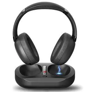 PILSAMAS Wireless Headphones for TV Watching - Manual-Select Screen Transmitter & LED Charging Dock, Zero Latency, 100ft - 2.4G & Bluetooth Headset for Samsung/LG/Sony TVs, Seniors, Hard of Hearing