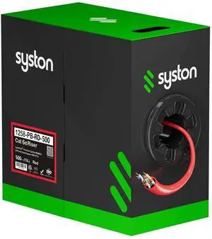 Syston Cable Technology Cat 5e Ethernet Network Cable -500 ft350MHz 24AWG Solid Bare Copper Wire Outdoor/Indoor, Bulk No Ends 10 Ft to 1000 Ft Available, Heat Resistant Riser Rated - CMR