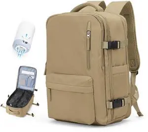 Vacuum Travel Backpack with Pump for Women,Personal Item Carry on Backpacks Flight Approved 18x14x8 inches for Men,Laptop Waterproof Work Compression bags Casual Daypack Khaki