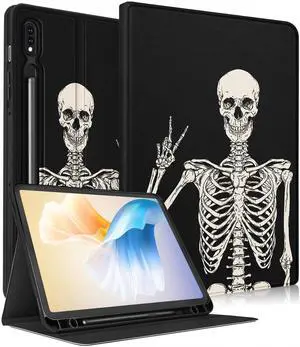 Wazzasoft for Samsung Galaxy Tab S8/Tab S7 Case 11 Inch Women Girls Boys Men Cute Folio Cover with Pencil Holder Skeleton Skull Gothic Design Teen Tablet Cases for Samsung Tab S7/Tab S8 Case 2022/2020