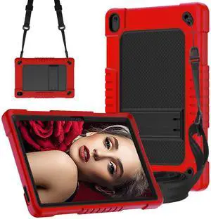 Kebiory for Walmart Onn 10.1 2024 Tablet Case Shockproof Hybrid for Kid Kids Friendly Shell Case Built in Shoulder Strap Stand for Walmart Onn 10.1 2024 100135925 (RedBlack)