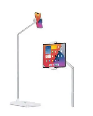 2-in-1 Tablet Floor Stand with Tablet Stand for Desk Stable 8lb Base with Stretchable Arm for Bed, Couch, or Desk Compatible with iPads, Galaxy Tabs, Surface Pro, Phones & E-Readers (4.7"12.9")