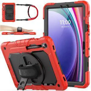 SEYMAC stock Case for Samsung Galaxy Tab S10 Lite / S10 FE / S9 FE 5G / S9 Tablet Case 10.9''/ 11'' Protective with Screen Protector, Pen Holder, 360 Rotate Stand, Hand Strap, Shoulder Strap, Red