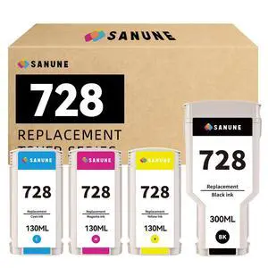 SANUNE High Yield 728 Ink Cartridges Set Replacement for HP 728 Ink Cartridges F9J68A F9J67A F9J66A F9J65A Ink Tank for HP DesignJet T730 T830 MFP Large Format Plotter Printer (4-Pack)