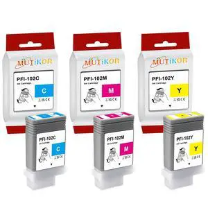 Mutikor PFI-102 Ink Tank Color Pack Compatible Replacement for Canon PFI-102C PFI-102M PFI-102Y Ink Cartridge for Canon IPF500 IPF510 IPF600 IPF605 IPF610 IPF650 IPF700 IPF710 Printer (3-Pack, C/M/Y)