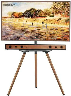 ECOTINY Tripod Easel TV Stand for 43 to 65 Inch LCD LED OLED Screen, Height Adjustable and Swievel TV Stand, Portable Corner TV Floor Stand with Wooden Tray, VESA 400x400mm, Minimalist Black Walnut