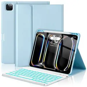 HOTLIFE for iPad Pro 11 Inch (M4) 2024 Case with Keyboard, Magnetic Detachable - 7 Color Backlit Keyboard Case for iPad Pro 11 (M4),Wireless Folio Keyboard Cover with Pencil Holder (Sky Blue)