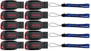 SanDisk Cruzer Blade 8GB (10 pack) USB 2.0 Flash Drive Jump Drive Thumb Drive SDCZ50-008G-10PK w/ (5) Everything But Stromboli (TM) Lanyard
