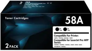 58A CF258A - for LaserJet 58A Black Toner Cartridge - Compatible for HP 58A CF258A 58X CF258X - Compatible with MFP M428fdw M428fdn M428dw M404 Pro M404n M404dn M404dw - with Chip, 2Pack