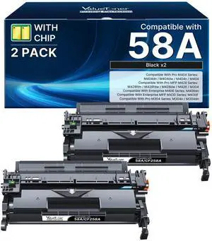 58A CF258A Toner Cartridge Black (with Chip) Compatible Replacement for HP 58A CF258A 58X CF258X Toner Use for LaserJet Pro MFP M428fdw M404dn M404n M404dw M428fdn M430f M406dn Printer (2 Pack)