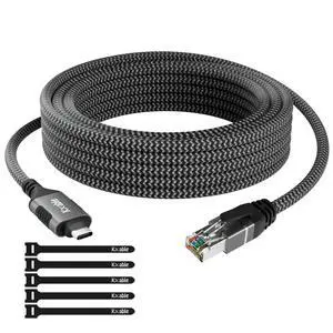 USB C to Ethernet Cable 8FT, Type C to RJ45 Cord, Gigabit Directly Connected, Thunderbolt 3/4 Compatible, for MacBook Pro/Air, iPad Pro, XPS, iPhone 17/16/15 Series, Galaxy S25, Laptop, Tablet, etc