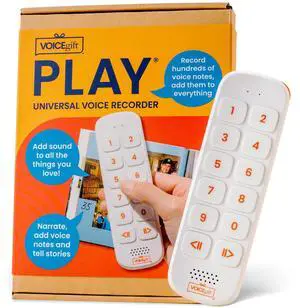 VOICEGIFT Play, 10 Hour Capacity Screen-Free Voice Recorder, Playback Tool, Portable Electronic Story Player with Speaker, Clip & Strap, Add Voice to Journals, Albums and Keepsakes