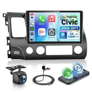 6G+128G 8Core Android 13.0 Car Stereo for Honda Civic 2006-2011 with Wireless Carplay/Android Auto, 10.1 inch 1280 * 720 Touchscreen Radio, WiFi 4G/GPS/AM/FM/DSP Audio/SWC/HD Rear Camera