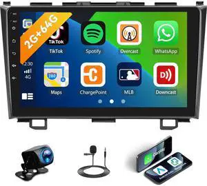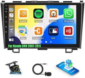 Car Stereo for Honda CRV 2007-2011 with Apple CarPlay/Android Auto, 9 Inch Touch Screen Bluetooth for CRV CarPlay Radio Head Unit, FM, Mirror Link SWC EQ Dual USB Input with Backup Camera Mic