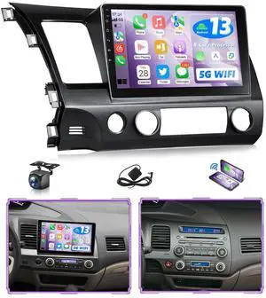 8 Core 4+128GB Car Radio for Honda Civic 2006-2011 with CarPlay Android Auto, 1280 * 720P IPS Touch Screen Android 14 Civic Stereo with GPS WiFi Bluetooth Voice Control EQ Backup Camera
