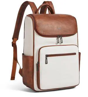 tiamyi Leather Backpack for Women, Fits 17 Inch Laptop in Main Compartment, Dedicated 15.6 Inch Padded Sleeve, Large Vegan Leather Travel Computer Bag with Luggage Strap for Business and Work, Beige