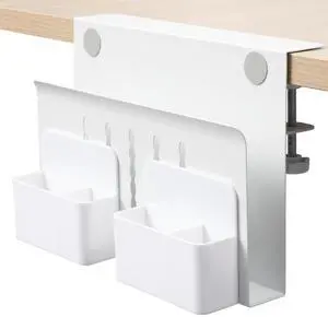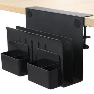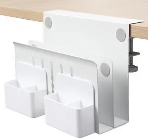 MAXECHO Desk Side Storage, Under Desk Laptop Mount, Table Side Hanging File Organizer, No Drill Clamp On Cable Management Tray, Laptop Holder with Magnetic Pen Holder for Office and Home, Load 22 Lbs