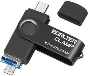 512GB 3 in 1 USB 3.0 Flash Drive Photo Stick for Android Phones, BorlterClamp OTG Memory Stick with 3 USB Ports (USB C, microUSB, USB A) for Samsung Galaxy, LG, Tablets, PC and More, Black