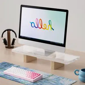 Hunfuthr Acrylic Monitor Stand Riser, Premium Large Clear Monitor Riser 19.6 inch, Sturdy Wood Computer Stand Office Desk Accessories, Desk Organizer Riser for Laptop Printer Computer TV