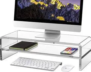 Acrylic Monitor Stand, 2 Tier Computer Monitor Stand Riser20 inch Acrylic Computer Monitor Stand Riser for iMac, PC, Desktop, Laptop, TV Screen with Extra Storage Space Home Office