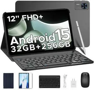 DOOGEE T36 12 inch Tablet with Keyboard, 32GB+256GB/2TB Expand Octa-Core Gaming Tablets,8800mAh,FHD+ Touchscreen with sim Card Slot,Android 15 Tablet,WiFi 5,Dual Camera,BT5.0,Widevine L1,Black