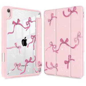 Tuiklol Clear Case for iPad mini 7 (A17 Pro 7th Generation) 2024 / iPad mini 6 (6th Generation) 2021 8.3 Inch,Built-in Pencil Holder Slim Transparent Back Shell Cover Auto Wake/Sleep, Bow-Pink