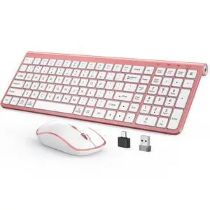 JOYACCESS Pink Wireless Keyboard and Mouse, Typewriter Keyboard Wireless, Ergonomic and Quiet Computer Mouse for for Desktop/PC/Laptop/Surface/Smart TV and Windows 10/8/ 7