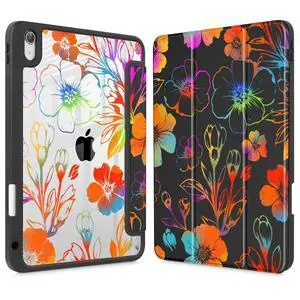Tuiklol for 2025 iPad (A16 Chip) 11th Generation 11 inch/iPad 10th Generation 10.9 inch 2022 Case, Buit in Pencil Holder with Clear Back Shell Cover Trifold Stand Auto Wake/Sleep,Color Flower Black