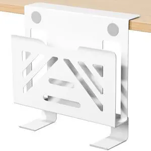 MAXECHO Desk Side Storage, Under Desk Laptop Mount, Table Side Hanging File Organizer, No Drill Clamp On Cable Management Tray, Laptop Holder with 2 Hooks for Office and Home, Load 22 Lbs