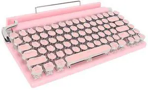 Retro Pink Mechanical Gaming Keyboard, 104 Keys, Blue Switch, Bluetooth 5.0, Compact, 2000mAh Battery