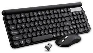 Wireless Keyboard and Mouse Combo, 104 Round Keys Cute Colorful Cordless Keyboard and Mouse with Retro Typewriter Black