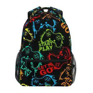 Fisyme Colorful Video Game Backpack Laptop Bag Daypack Travel Hiking School Backpacks for Men Women Kids Girls Boys
