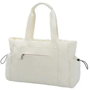 Tote Bag Purse for Women Shoulder Bag, Lightweight Puffy Work 14" Laptop Bag, Large Carry On Travel Tote with Pockets (White)