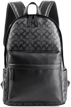 Leather Laptop Backpack for Men Women, School College Bookbag Casual Travel Daypack (Black)